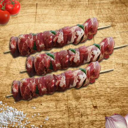 Συστατικά: Φρέσκος χοιρινός κιμάς από σπάλα ελληνικής προέλευσης, κρεμμύδι, μαϊντανό και μπαχαρικά τυλιγμένη σε μπόλια από αρνί.
